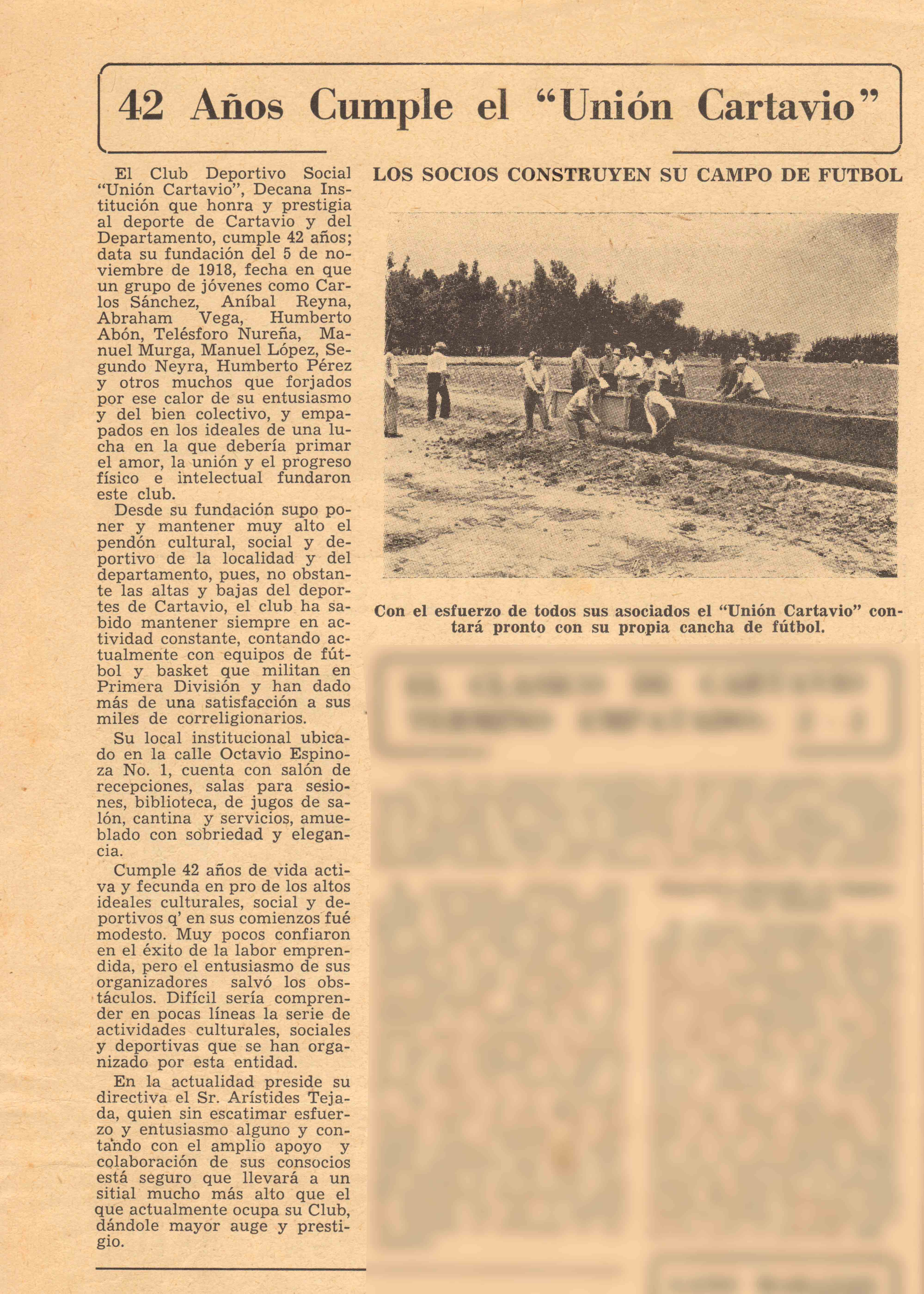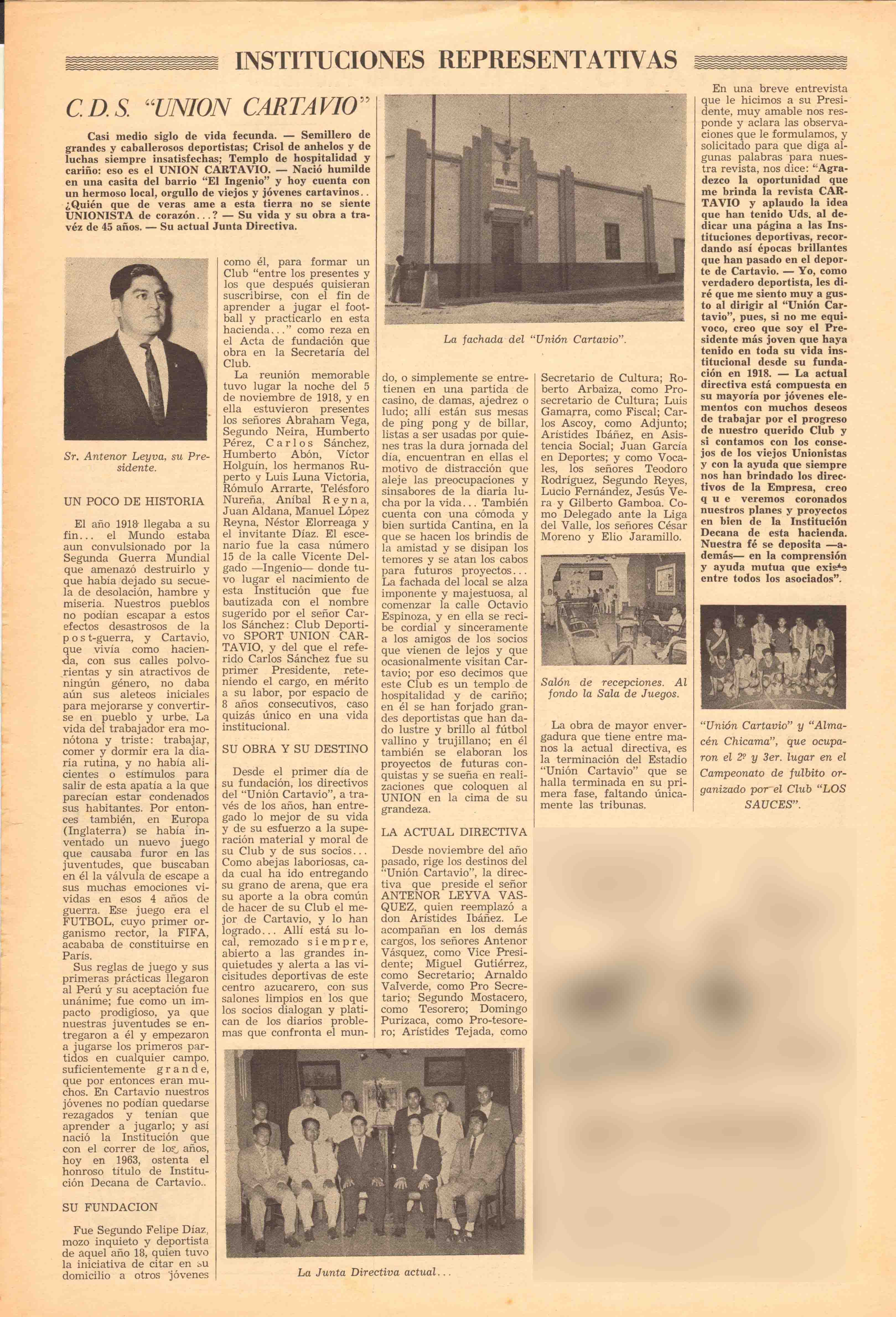 por e hicieron grande nuestro club quedará en el olvido. El Club Unión Cartavio, la institución más antigua de la comunidad, heredera del